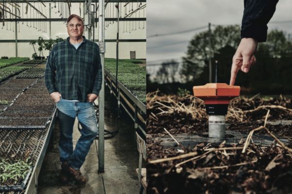Sweetgreen合作的农场主和他田里的传感器 | 图源:Sweetgreen