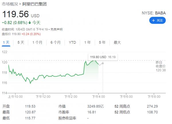 受此消息影响,阿里巴巴美股日内跌幅一度收窄至0.5%以内,盘初跌近4%。阿里巴巴股价在上一交易日上涨了1.7%,在过去一周里上涨了3%。
