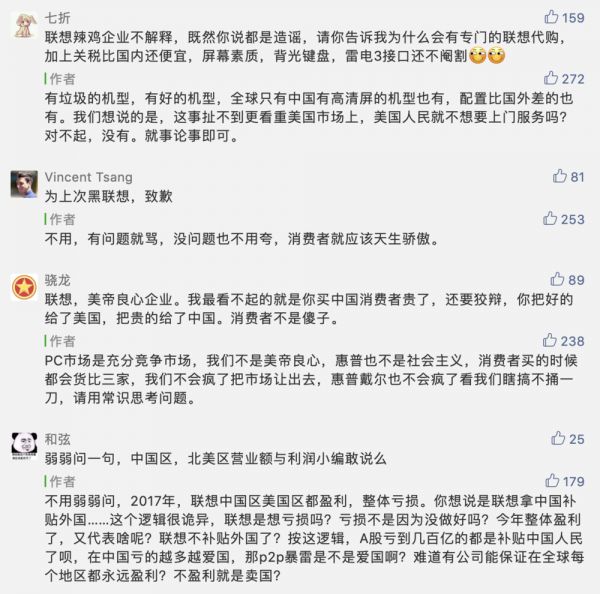 另外一个案例是联想,因为一些众所周知的原因,联想的品牌形象一直不算好,网友们将其调侃为“美帝良心想”。上个月,联想运营人员在公众号评论区开始与网友“硬刚”: