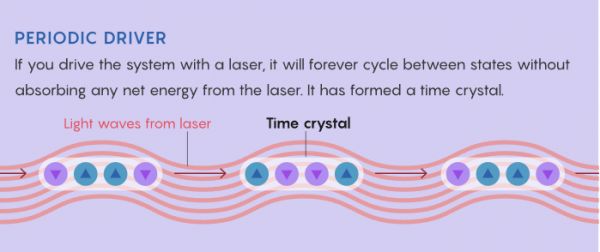 时间晶体的神奇之处在于,当它在两种不同的配置之间来回循环时,不会损失或消耗任何能量。