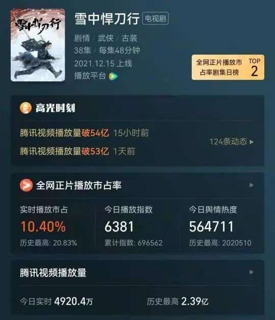 《雪中悍刀行》之外,每经记者观察到,2021年整个古装剧市场也是雷声大雨点小,表现平平。