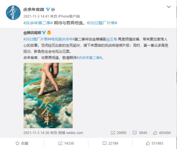 2021年底,官方通知,《庆余年2》将要回归,续集仍由王倦编剧,目前已知张若昀继续参演,此外也将有新角色的加入。