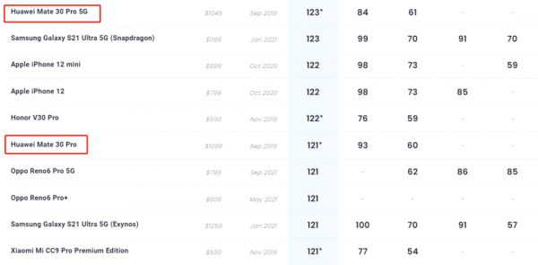 最明显的莫过于2019年的榜单排名,在那一年华为拿出了自家的影像旗舰P30 Pro并获得了112分的高分,但随着S10也拿下112分的评分后,华为P30 Pro以重测为由将分数提升至116分。半年后,这一操作再次重演,当小米CC9 Pro的分数追平华为Mate 30 Pro(4G版)后,Mate 30 Pro 5G版本以加测的方式将分数拉高了两分,其权重性和专业性不言而喻。
