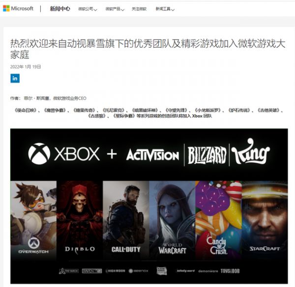 2022年1月18日,微软突然宣布以687亿美元的现金全资收购动视暴雪。