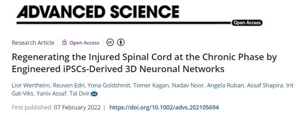 相关研究以“Regenerating the Injured Spinal Cord at the Chronic Phase by Engineered iPSCs-Derived 3D Neuronal Networks”为题,发表在最新一期的 Advance Science 杂志上。