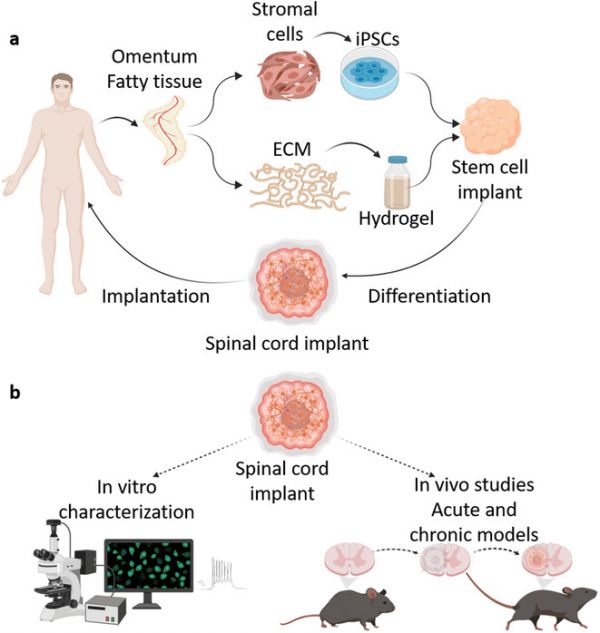 目前,为了重新连接受伤的脊髓,临床研究人员曾提出过多种方法,例如在急性损伤期将不同类型的细胞或生物材料移植到受损部位,包括施万细胞、神经干细胞、神经祖细胞或间充质干细胞在内的多种细胞移植疗法都曾进行过测试。