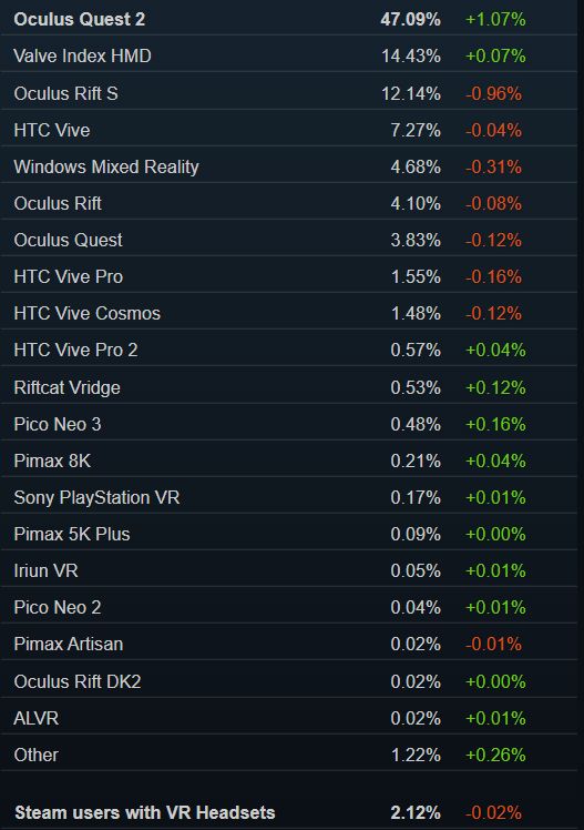 Steam公布了最新的平台VR头显使用占比