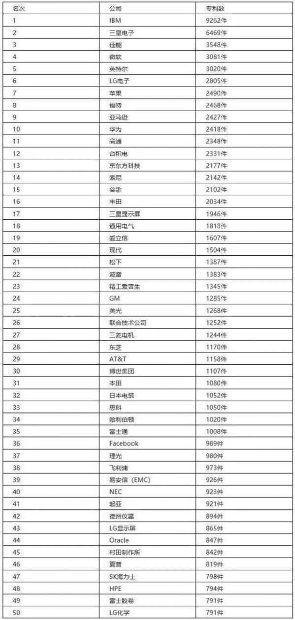 专利被授予数量TOP50企业(滑动查看全部内容)