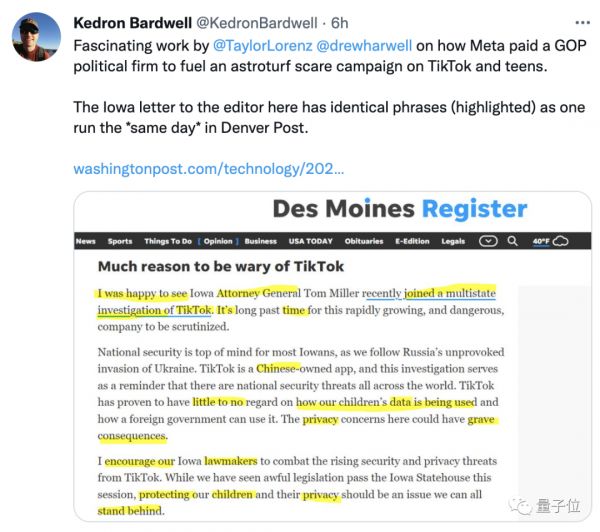 具体的则是通过各类渠道扩大对TikTok的负面报道,主要是两点:
