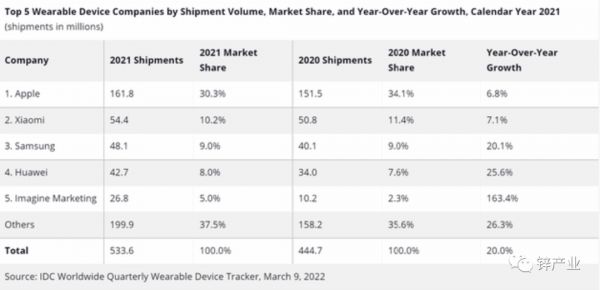 IDC:全球可穿戴设备三季度出货量同比接近翻倍,华为全球排名第四