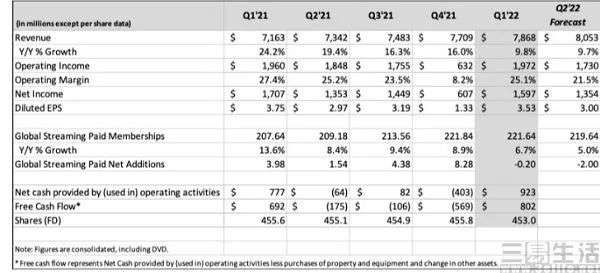 根据这份财报显示,该季度奈飞全球的订阅用户数量为2.2164亿、同比增长6.7%,但环比减少了20万,是其历史上首次出现的用户量下滑。并且更为雪上加霜的是,奈飞方面预计下一季度还将继续减少200万用户。