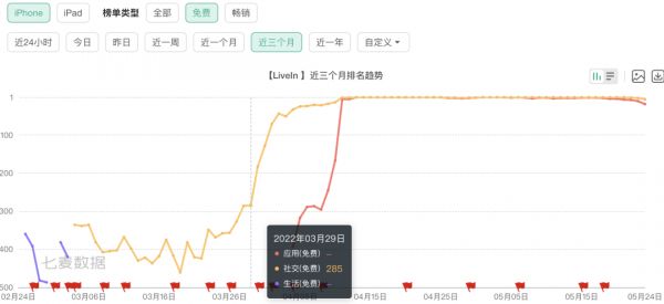 LiveIn 近三月榜单排名变化|七麦数据