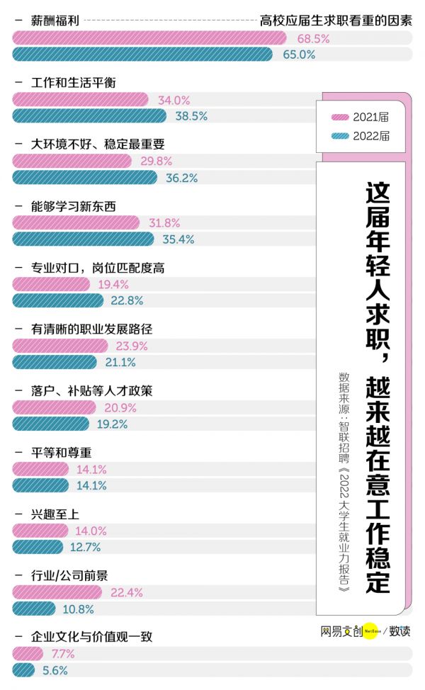 与此同时,他们愈发重视工作稳定,看重该因素的人较上一届增加了 6.4 个百分点 [1]。
