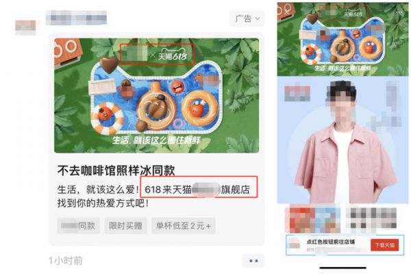 图注:某品牌天猫618朋友圈广告和第一次跳转页面