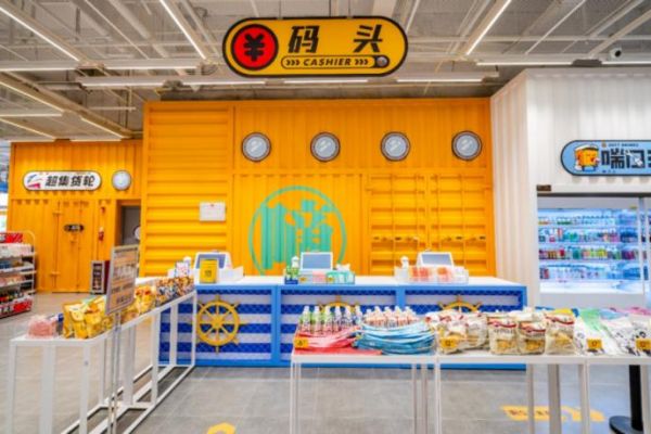 因此,KK集KKV在成立的这三年来,一直持续不断地在场景上进行着创新,从1.0版的饰品墙、面膜墙、口红墙、红酒墙、泡泡球墙迅速出圈,到2.0版的以红色、黄色、白色为主视觉,以汽车轮胎、交通指示标、交通路障、反光镜等趣味元素打造各种交互式卡车主题场景。如今,KKV在设计上已经迭代到3.0版本,并加入海洋蓝,将海洋元素,如船锚、救生圈、仪表盘、船舵、生活区甲板、码头、轮船等引入店内,再配以经典明黄色配合海洋蓝的主题色调,打造出了全新的航海氛围。