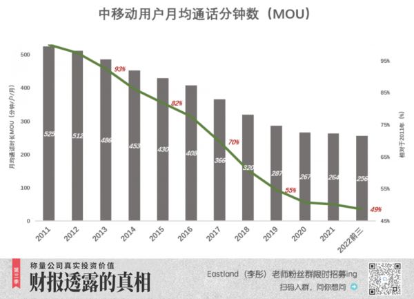 2022年前三季,MOU为256分钟,平均每天8.5分钟,相当于2011年的一半。