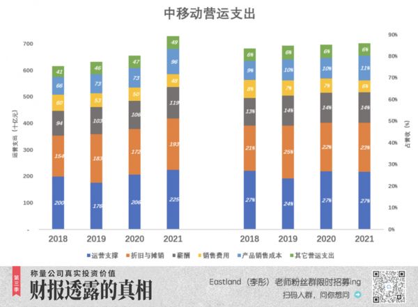 中移动将营运支出分为六大类: