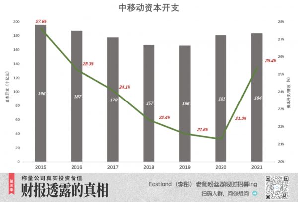 2022年资本开支预计为1852亿,主要用于“构建品质一流的5G网络”。