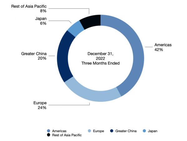 根据苹果公布的财报显示,2023财年Q1净销售额为1172亿美元,同比减少5%,其中来自大中华地区的销售额为239亿美元,同比减少7%,中国大陆市场的跌幅正在扩大。