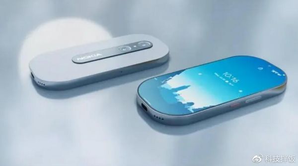 第一部是诺基亚6600复刻版概念机,它延续了“胖6”敦实的圆形设计,正面由一块椭圆形全面屏覆盖,看起来与目前市面上的所有安卓手机都不一样,极具辨识度。