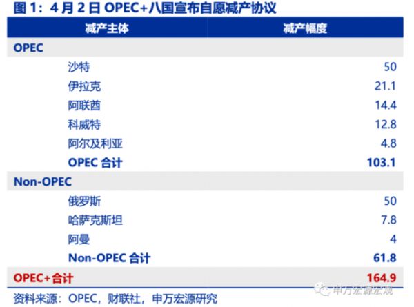 4月2日的一则突发消息引发原油大涨,即以沙特为首的OPEC+宣布集体“自愿”减产,合计减产量接近165万桶/日。