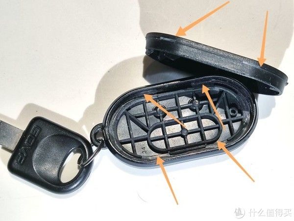 而且有一边的卡扣两个都断了,会影响后盖的稳固。遥控器是靠后盖这几个卡扣,压着前面的软胶前盖,来达到内部的密封。现在卡扣断了,遥控器的密封遭到破坏,就很容易进水。