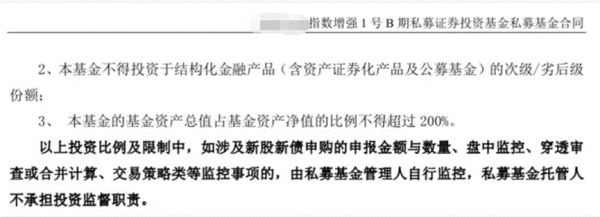 此外,“本基金的基金资产总值占基金资产净值的比例不得超过 200%”的表述,在其他量化私募产品合同中也普遍出现。