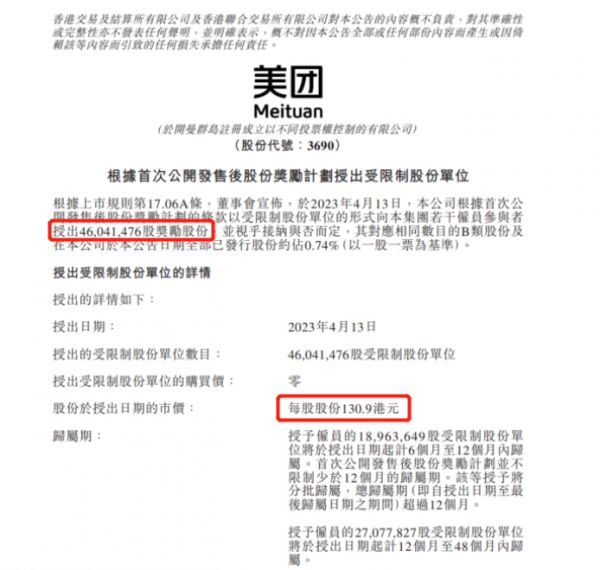 美团表示,此举旨在使承授人的利益与集团利益一致,并鼓励及留住承授人,为集团的长远发展及利润增长作出贡献。