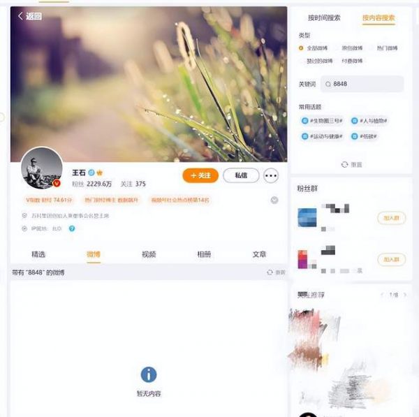 图/王石微博8848钛金手机搜索结果 来源/王石微博 燃次元截图