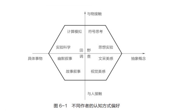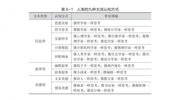 在第三章中,我将文本分为信息型、叙事型、美感型三大类。其中,信息型文本主要包括思想实验、符号思考、实验科学、计算模拟与田野调查五种认知方式;叙事型文本主要包括幽默叙事、故事叙事两大类;美感型文本主要包括文采美感、视觉美感两大类。