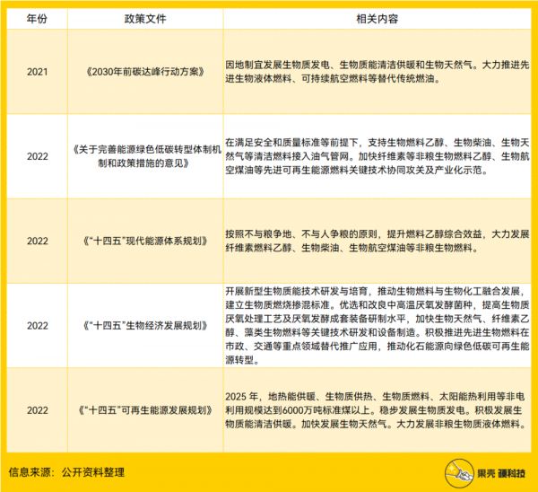 国内的生物质能源相关政策并不多,在“十四五”相关规划中主要作为一种补充能源被提及,并没有单独的、明确的规划。