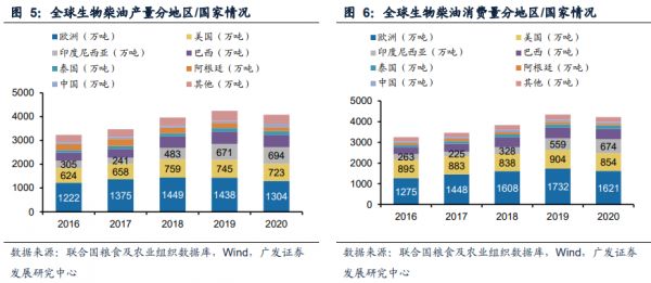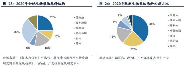 在持续的环保压力下,欧洲也在收紧对传统生物质燃料的限制。修订后的可再生能源指令(即RED II)就明确规定,粮食和饲料作物作为原料的生物质燃料在交通运输最终消费中的占比不能较2020年增长1%,最高不能超过7%;原材料具有重大环境风险的(如棕榈油),占比不能超过2019年,且到2030年要减少到0% [23]。