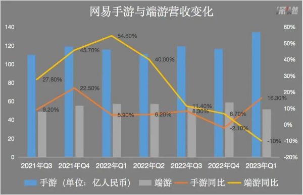 根据财报,2023年Q1,网易游戏及相关增值服务的201亿元净收入里,92.7%来自在线游戏,其中,72.3%来自手游。