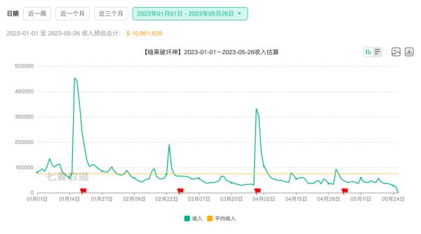 在iPhone设备端,下载量预估上,3月预估下载量为346万次,4月为276万次,下滑20%;收入预估上,3月1日~24日为2345万美元, 4月1日~24日为2029万美元,5月1日~24日为1167万美元,持续下滑。5月18日,单日收入一度下跌到24万美元,是今年以来的最低点。