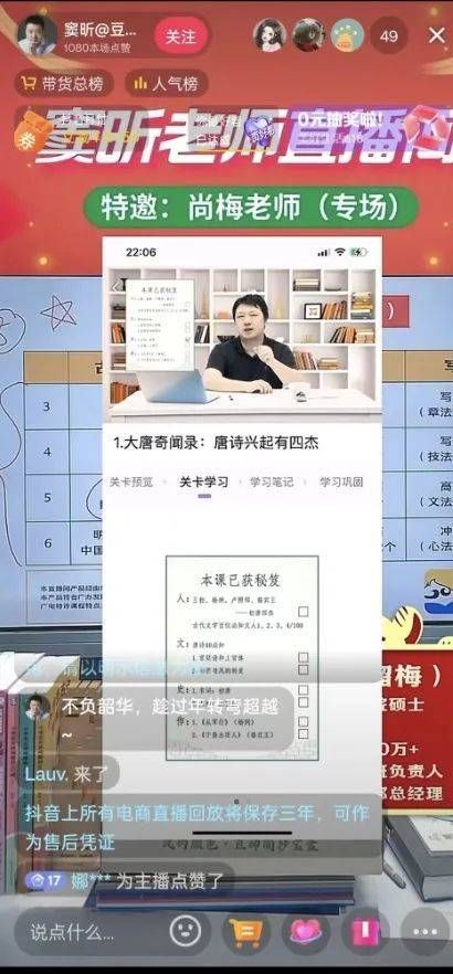 从内容上看,这些短视频账号主要分享文学知识、课程录播以及直播带货切片等内容,以提升文学素养、提高文化水平为卖点吸引粉丝。而这些老师在直播间讲解古诗词等中国文化的同时,向观众推销多品类文化课程、教辅资料等。