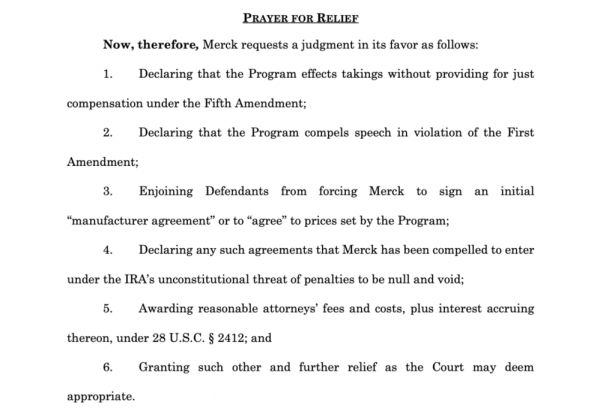 其实,《通胀缩减法案》发布时就有消息传出:部分制药巨头将就这一改革起诉美国政府违反宪法。但当时只是传言,没想到默沙东会真的动手打官司。