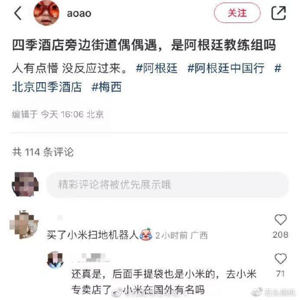 单就榜单来说,小米确实是遥遥领先的存在,当然小米在全球的影响力也有其他佐证。大家都知道,近期梅西来中国的热度很大,而有意思的是,有网友发现梅西所在的阿根廷教练组,居然组团去小米之家买东西,大包小包的提了很多的小米产品,包括扫地机器人。对此,有网友表示:来了总得带点特产回去。