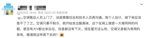社交网络上关于空调酸臭的吐槽丨微博
