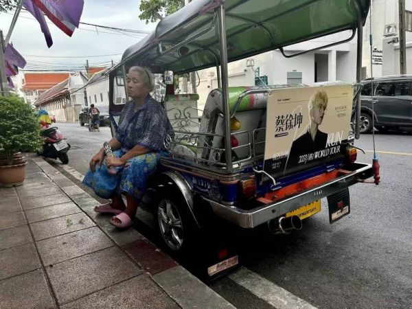 △ 东南亚摩的“突突车”,上面甚至挂着中国艺人的广告。(图源:时代周报记者 刘沐轩摄)