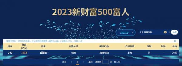《2023年新财富500富人榜》显示,戚振波以159.8亿元身家进入榜单,成为了MCN行业唯一一个入选新财富500富人榜的富豪。