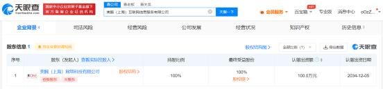 天眼查App显示,近日,美腕(上海)互联网信息服务有限公司成立,注册资本100万人民币,法定代表人为梁俊勇,经营范围含互联网信息服务、软件开发、品牌管理、个人互联网直播服务、互联网销售等。股东信息显示,该公司由美腕(上海)网络科技有限公司全资持股。