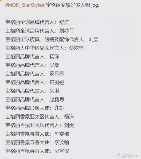 事实上,宝格丽名单上的一系列明星多数都面临着一个问题(舒淇除外)是,这些流量明星多数实力上还没有被广泛认可,主打的模式还是依赖颜值做圈层粉丝经济,虽有知名度,但是实力有争议,尤其是大屏幕上,电影导演其实用的少。