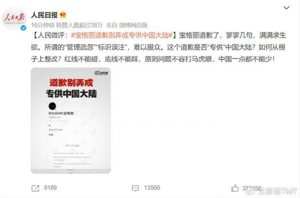 宝格丽回应为何将台湾列为国家:技术问题
