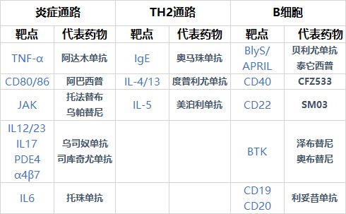 近几年,随着分子生物学的成熟,一些针对具体靶点调控的机制慢慢浮出水面,自免领域也像肿瘤药一样,若干大分子、小分子靶向药渐渐登上舞台。