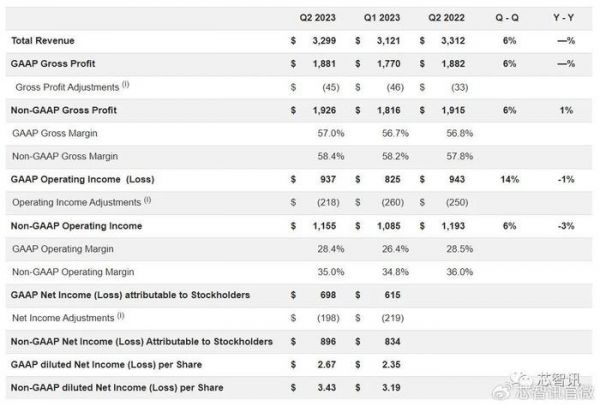 根据财报显示,恩智浦二季度营收32.99亿美元,同比下滑0.4%,环比增长6%,优于5月1日发布的财测中间值(32.00亿美元);非依照一般公认会计原则(Non-GAAP)营业利润为11.55亿美元,同比下滑3%,环比增长6%;Non-GAAP 毛利率为58.4%、优于此前预期的58.2%;Non-GAAP营业利润率自第一季的34.8%升至35.0%,但低于去年同期的36.0%;Non-GAAP 每股稀释盈利环比增长7.5%至3.43美元。
