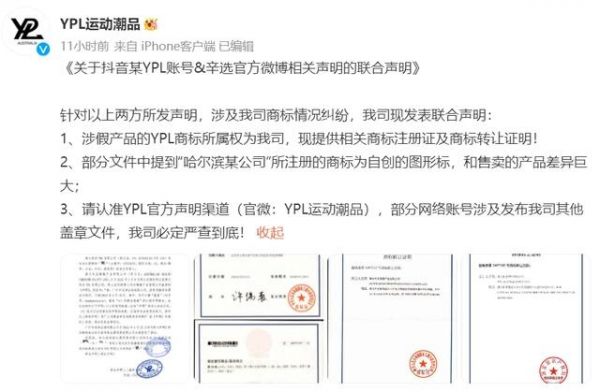 YPL品牌方否认商标授权,坚称辛选提供的商标系伪造的,辛选同样不松口,表示这场纠纷是因商标转让而产生的争议,不属于假货。