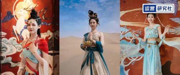 据阿月介绍,为了还原飞天妆造,她们特地邀请了研究敦煌文化多年的时尚造型艺术家君君做造型指导。连续 3 天的直播,每天都有一套崭新造型。