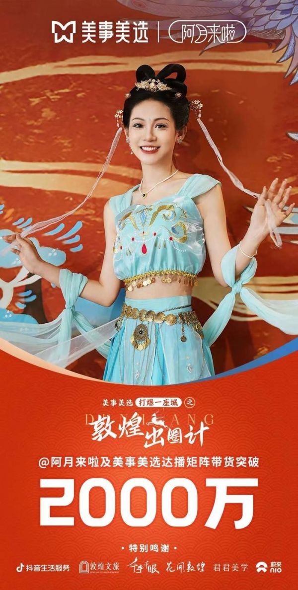 上个月,阿月和美图美事一起把直播间搬到敦煌,深度联动敦煌文旅集团有限公司,在敦煌做专场直播。