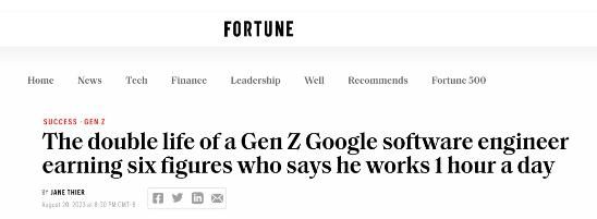 近日,《Fortune》报道称,年薪 15 万美元的谷歌软件工程师 Devon ,每天只干 1 小时活,剩余时间在「搞副业」。