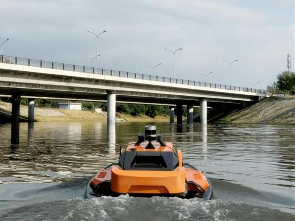 一艘无人船搭载水质传感器在水面进行水质监测作业。(受访者供图)